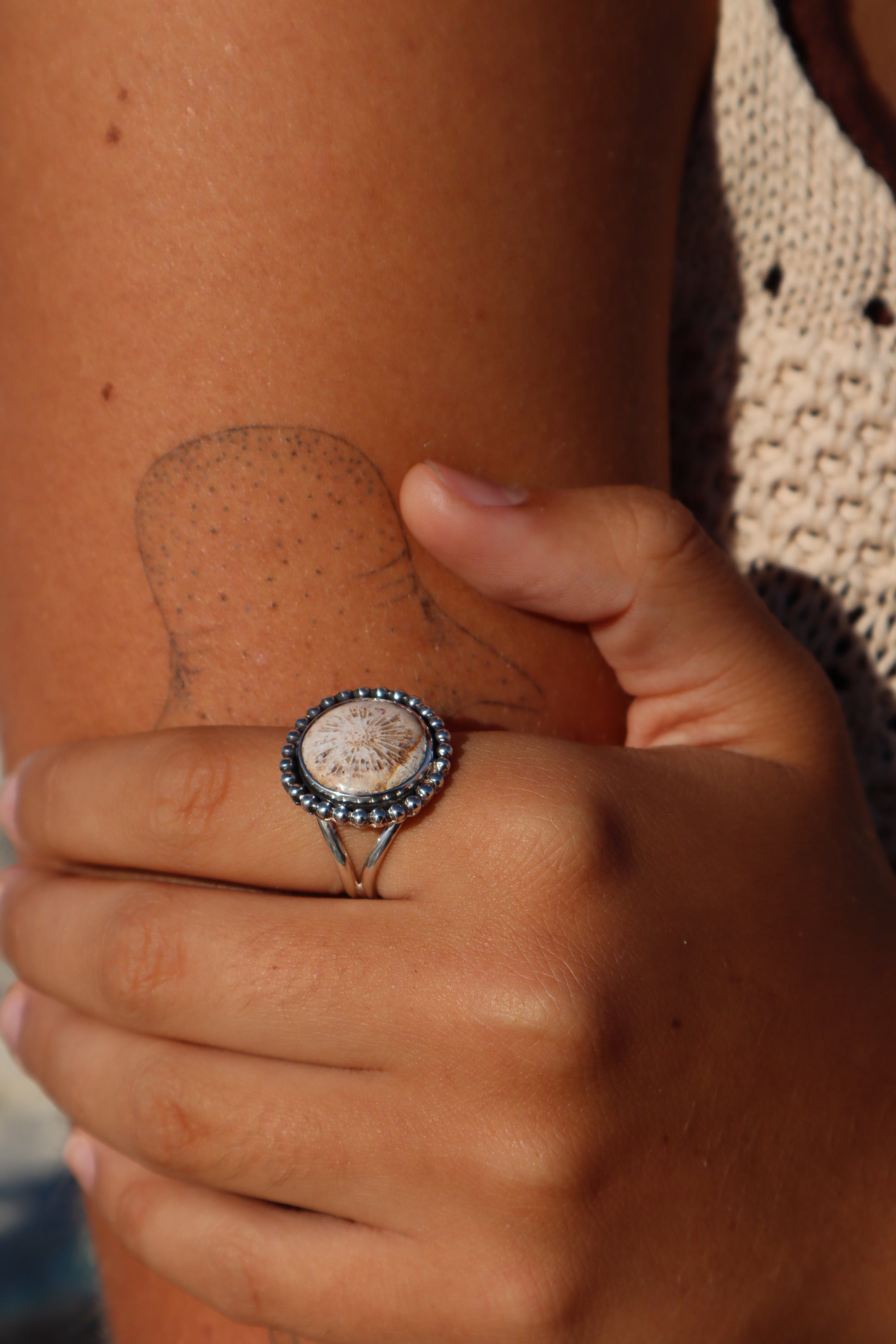 Fossilised Coral Daisy Ring SIZE P - 7 3/4
