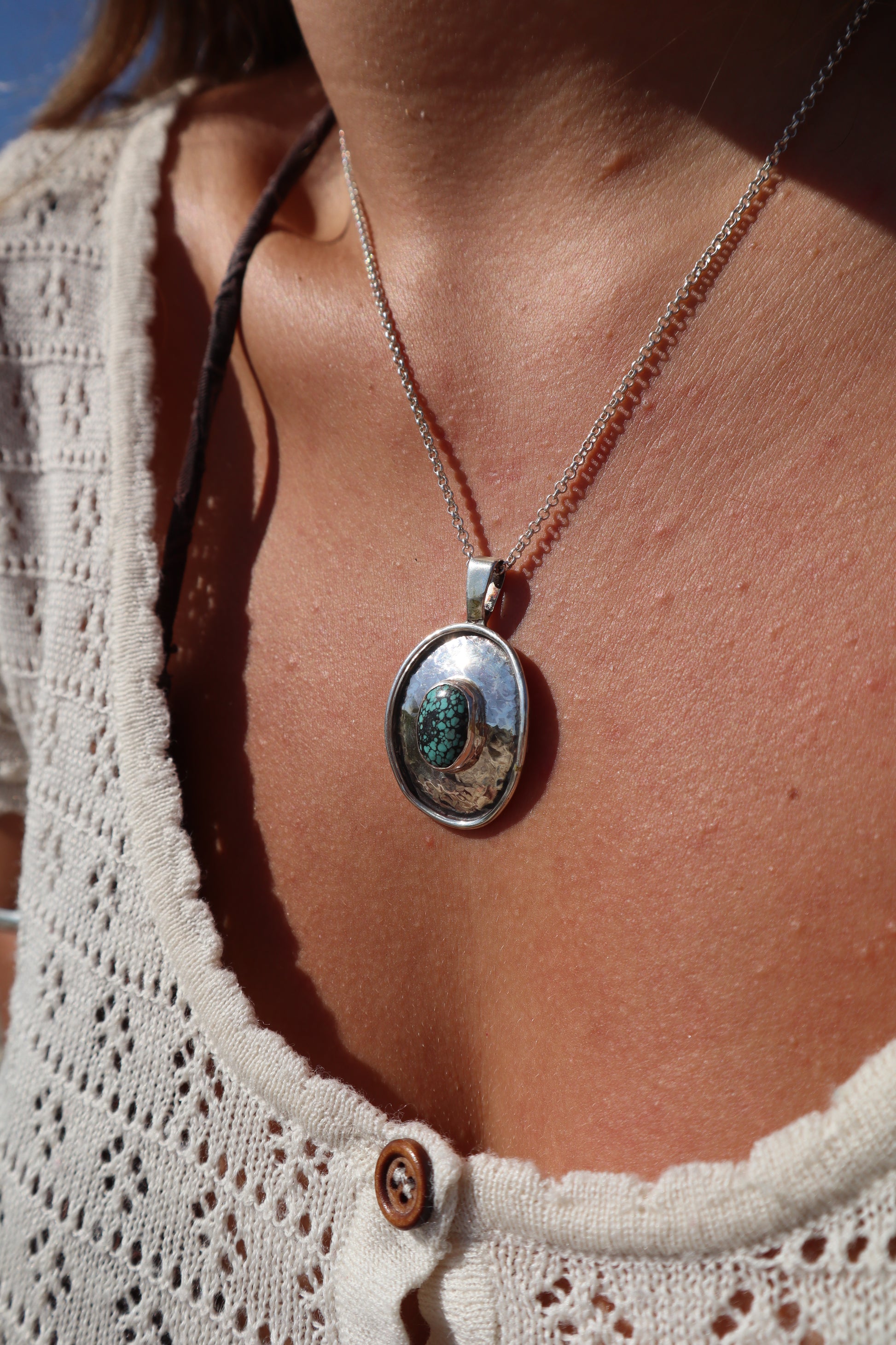 Handcrafted with 925 sterling silver and a beautiful turquoise stone.