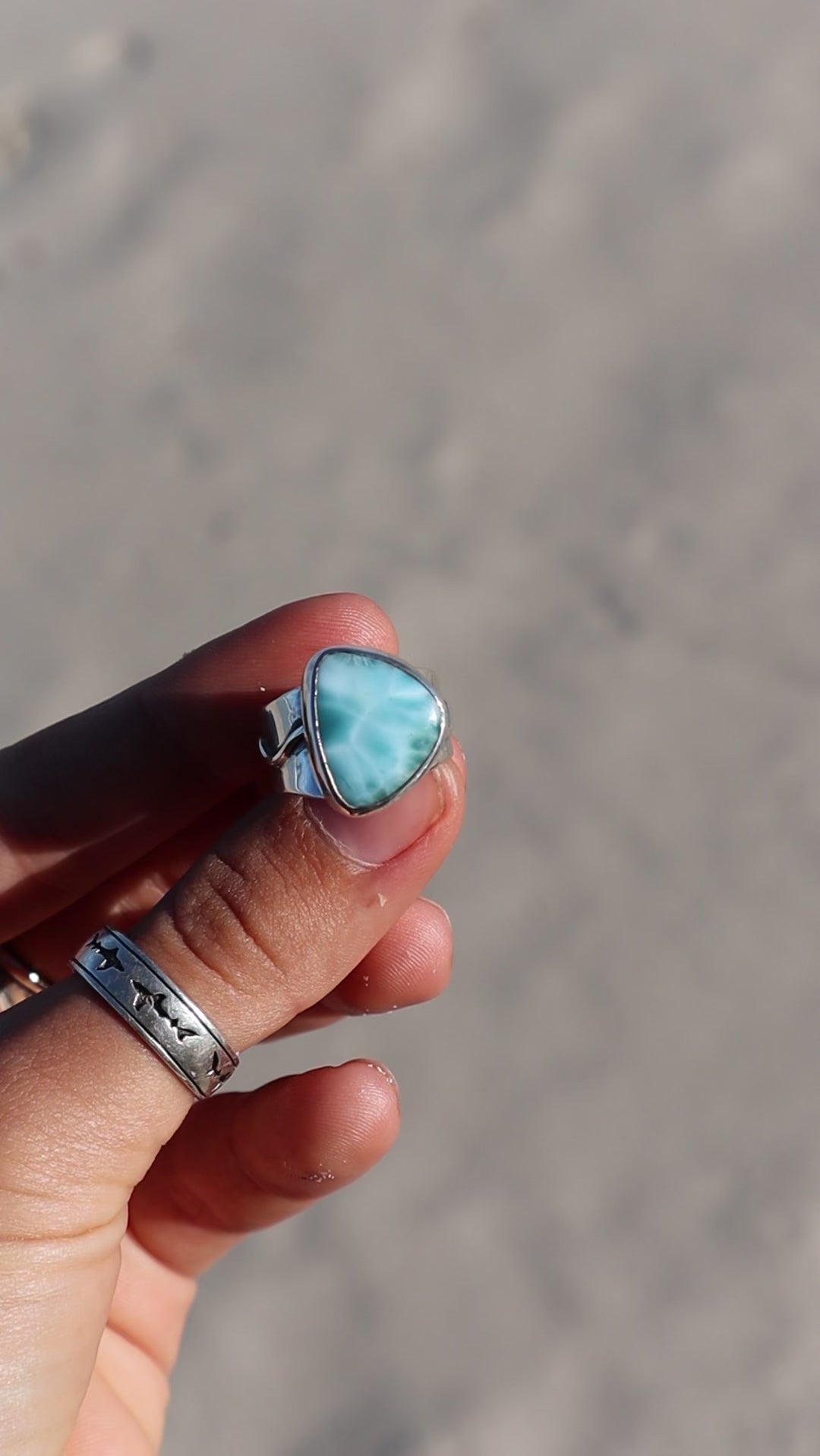 Handmade with 925 sterling silver and a stunning Larimar stone.