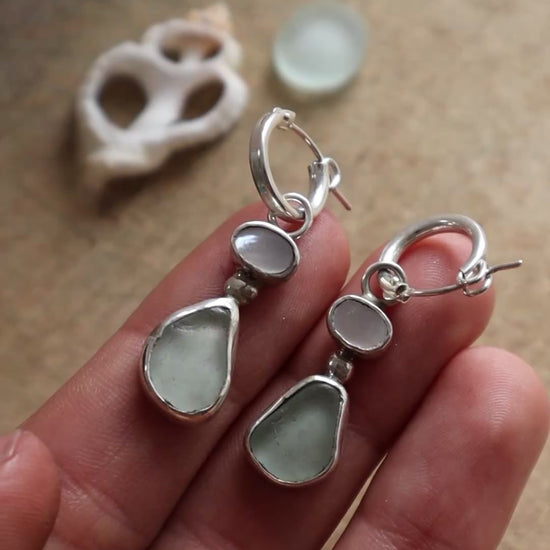 Handcrafted in 925 sterling silver, featuring mother of pearl shells paired with beautiful pieces of Seaglass.
