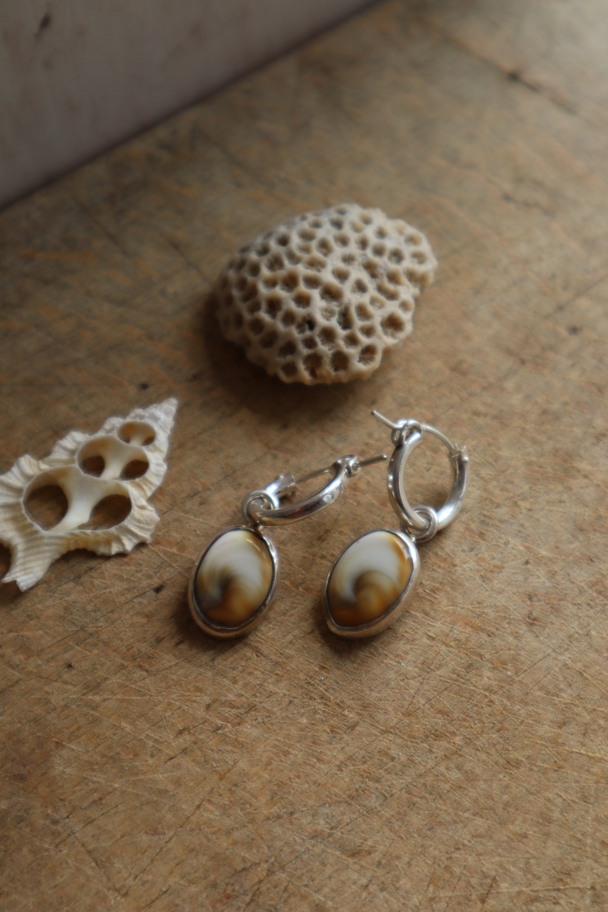 Handcrafted with 925 sterling silver and 2 operculum shells, these earrings have been designed to wear 2 ways.