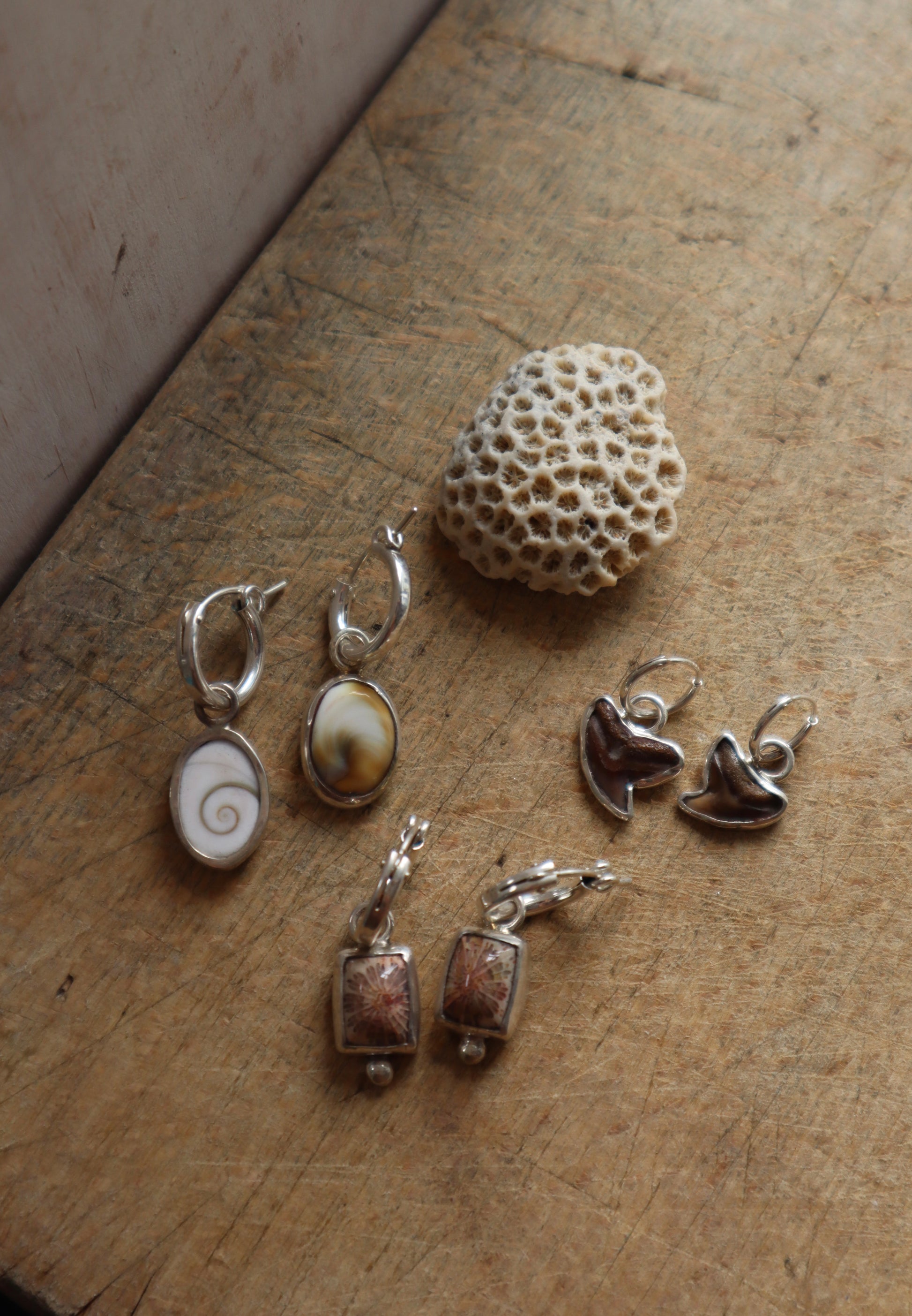 Handcrafted with 925 sterling silver and baby fossilised shark teeth, creating the perfect everyday earring that sits comfortably and securely in you ear.