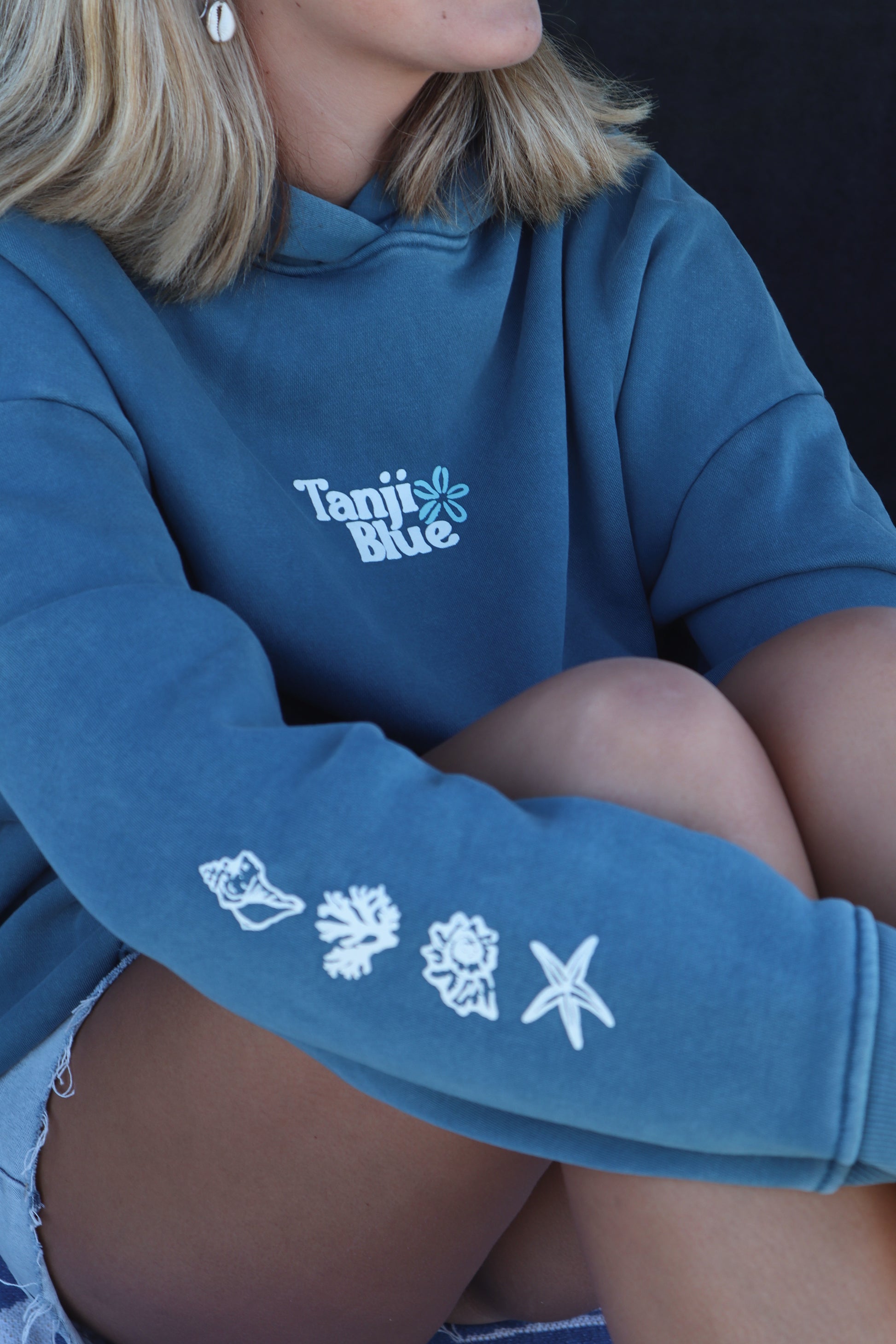 A vintage washed blue hoodie with a relaxed, unisex fit and original artwork inspired by the wild beauty of WA's north west. Crafted from our signature 80% cotton / 30% recycled poly blend, this cozy, light weight piece is made for year round wear and salty days by the sea.