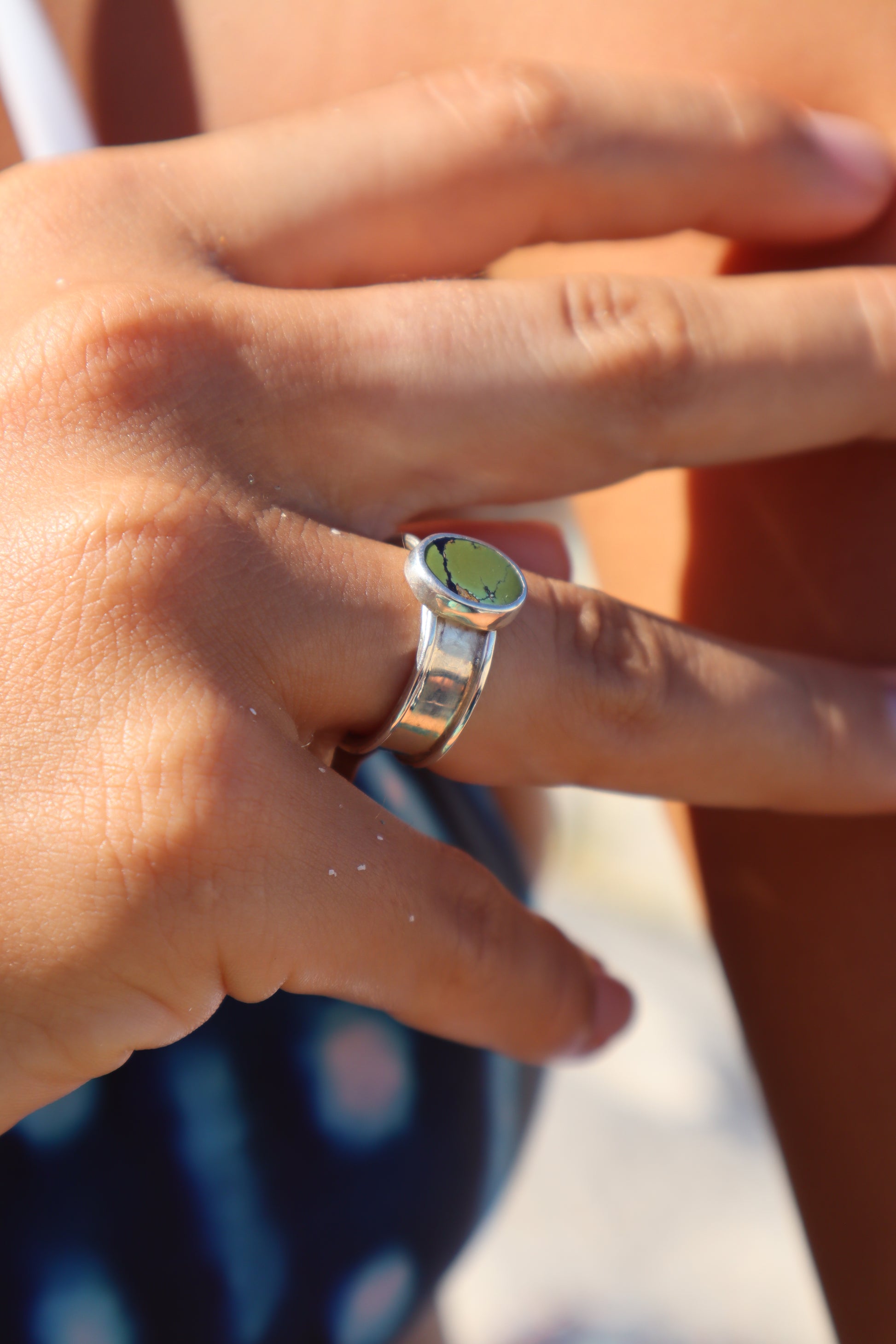 Handcrafted with 925 sterling silver and a beautiful Green Turquoise stone.