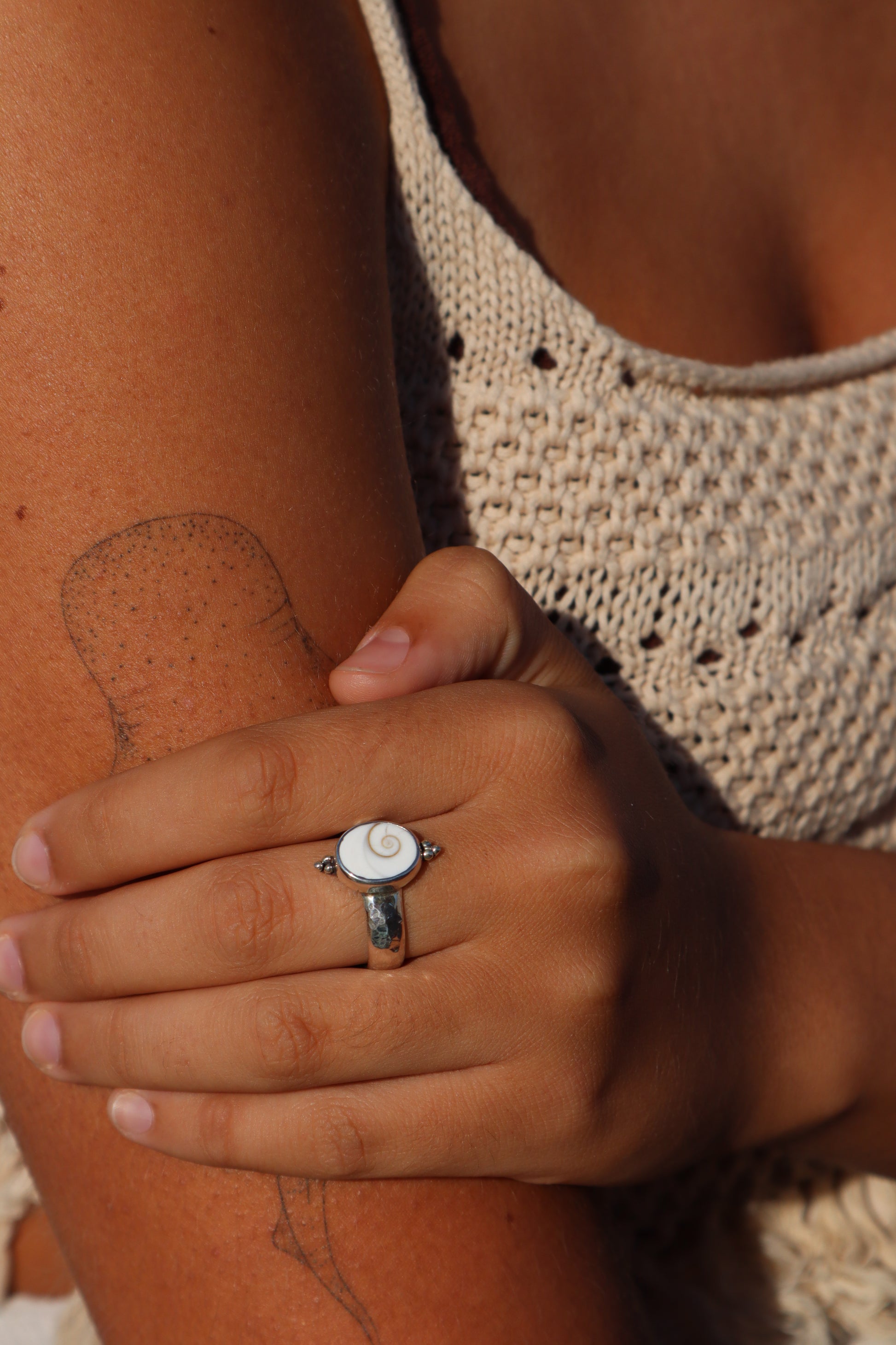 This ring has been handmade with sterling silver and a beautiful Operculum shell.